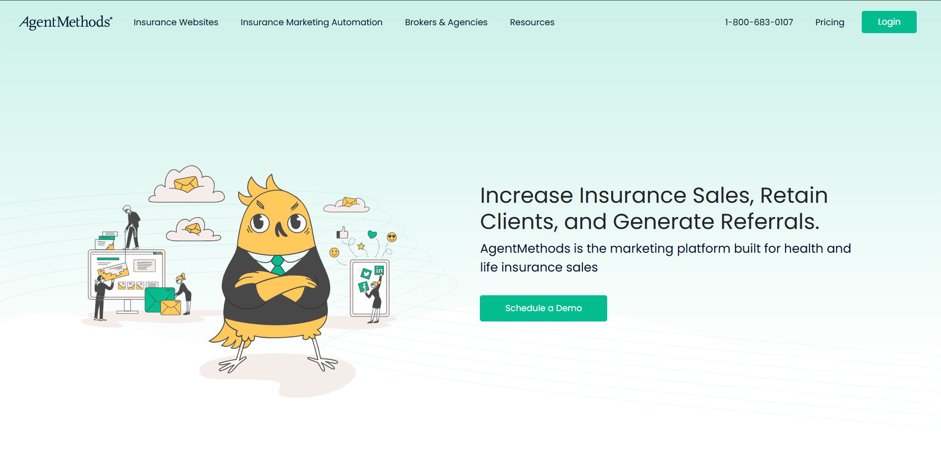 AgentMethods is a platform with marketing automation tools tailored for insurance agents, offering website design, automated social media, and appointment scheduling features to enhance online presence.
